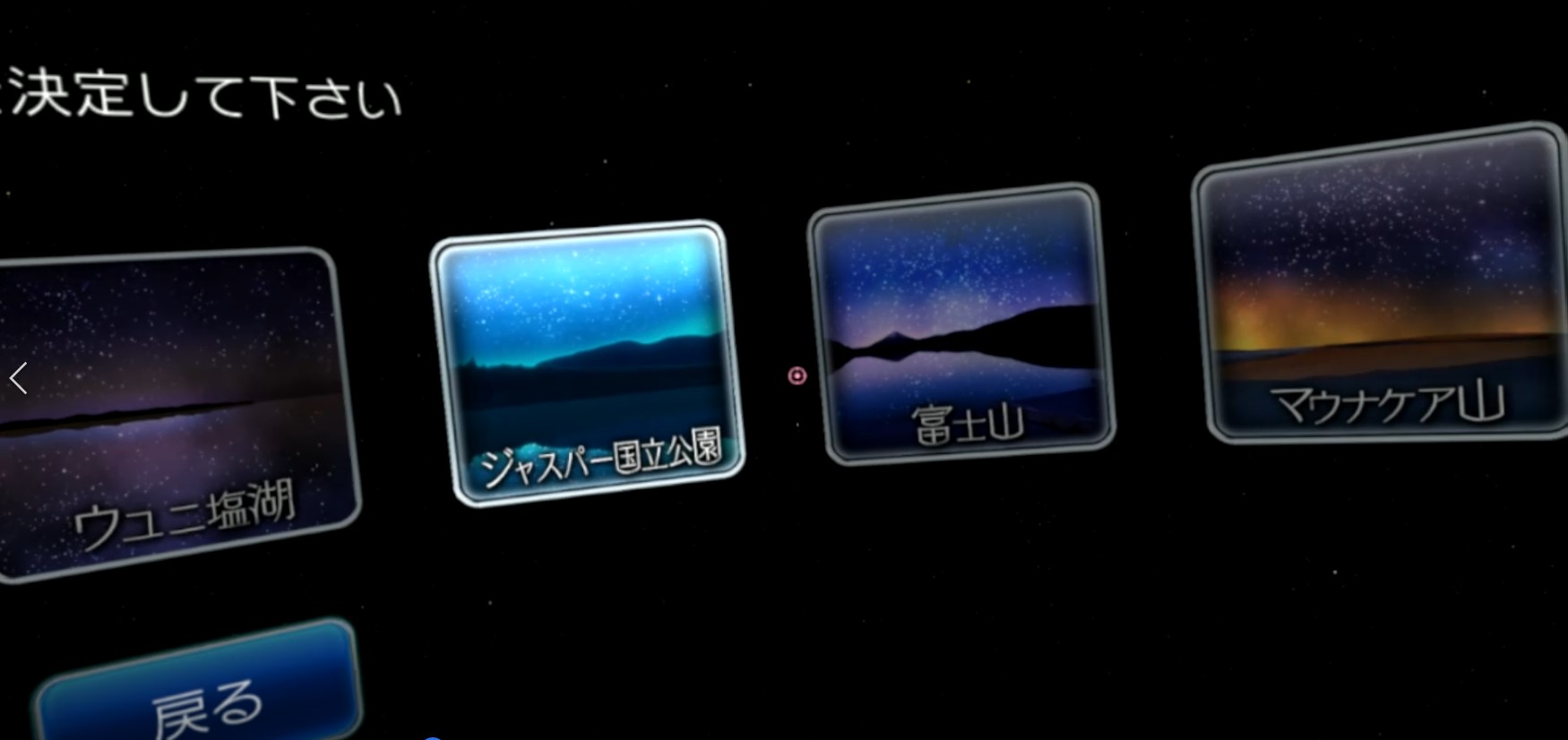 | 満天の星空セレクション(selection) | プリセット(preset)された世界の星空スポット(spot)を選択し、360°の満天空間が楽しめる。 |