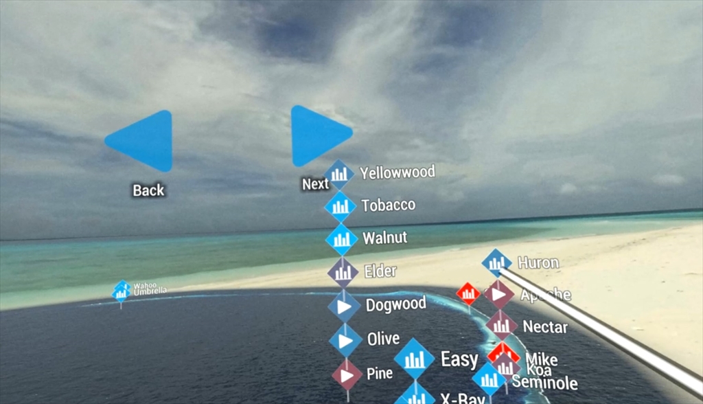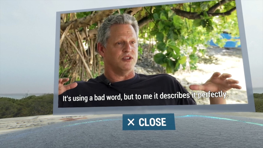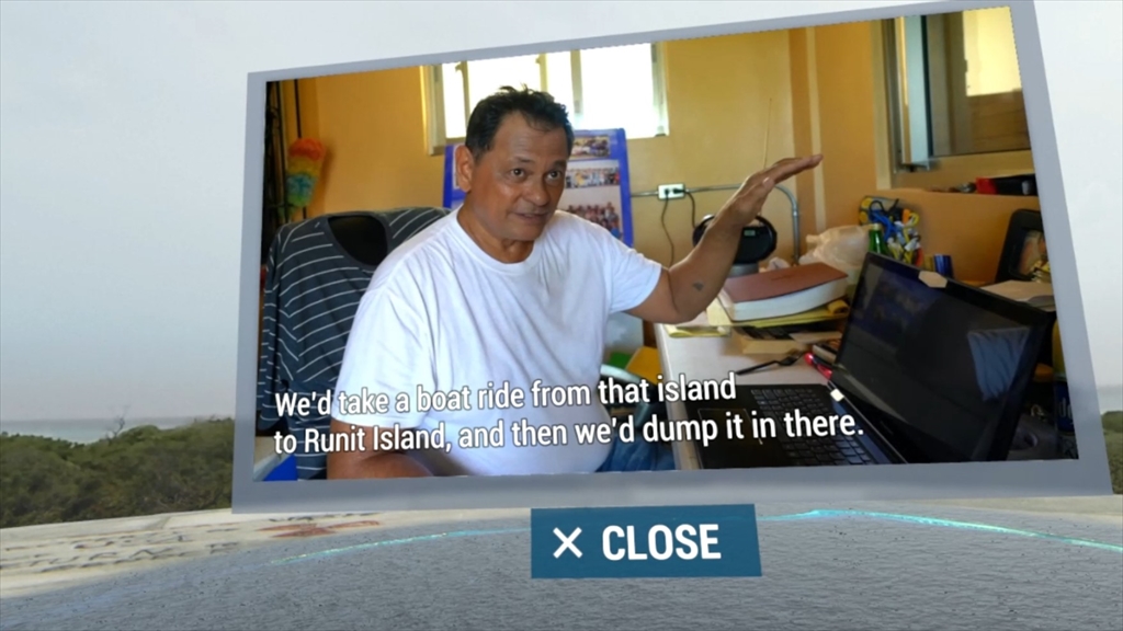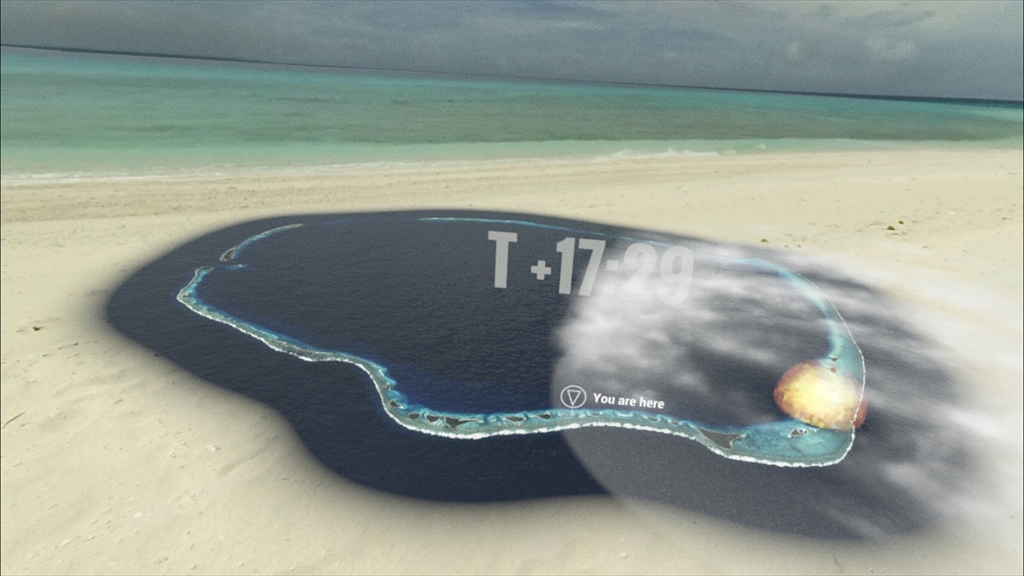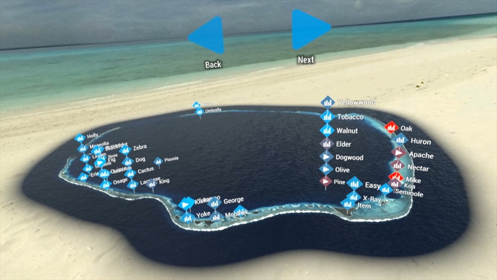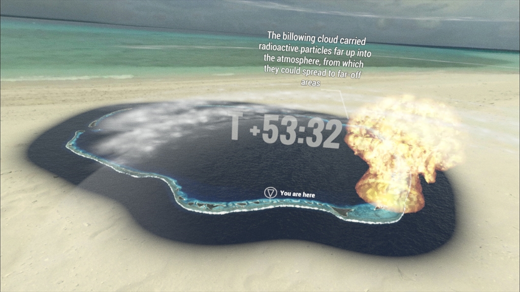 また、シミュレーションは、浜辺に立って行う仮想体験と、エニウェトク環礁を俯瞰する2つの映像に分かれています。
