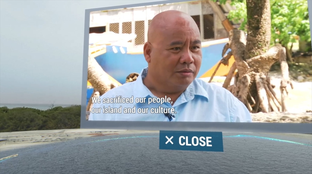 - Visit a family: エニウェトク環礁の避難住民は、1980年に帰国することを許可され、現在650人が住んでいる。取材先として訪れたのは、サロンモン・バウル(33歳)の家族。 米国は今でも四半期毎に、この島にお金と食べ物を支援している。しかし、2023年に米国は、エニウェトクへの援助を減少させるとしている。 「その時、エニウェトクの住民はどうなるのか?」というメッセージ映像。