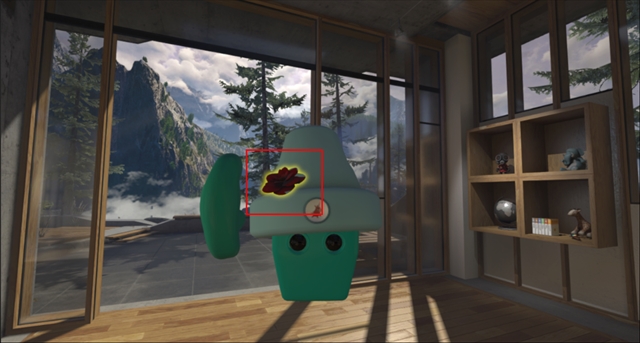 「トリガー」ボタンは押した状態のままにし、選択したアイテムをさらにアバターに近づけます。