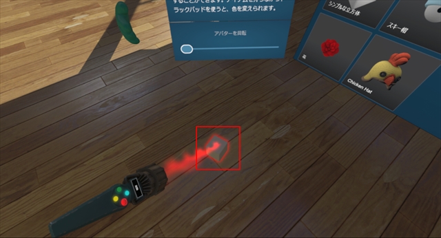 選択アイテムに光線が当たっている状態で「トリガー」ボタンを押したままにします。