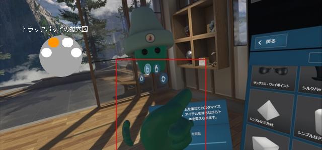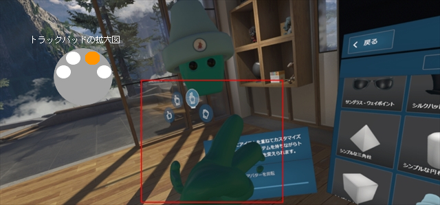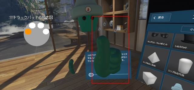 また、手の上に4種類の動作パターンが表示され、コントローラーの「トラックパッド」の上半分にそれぞれのパターンに割り当てられます。