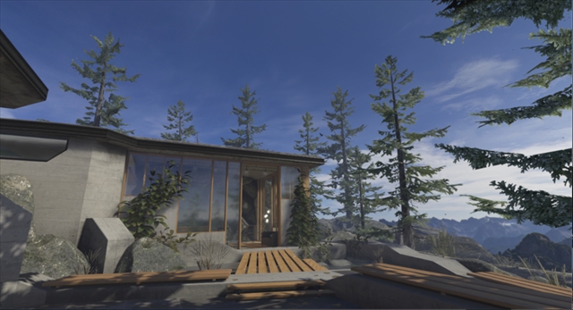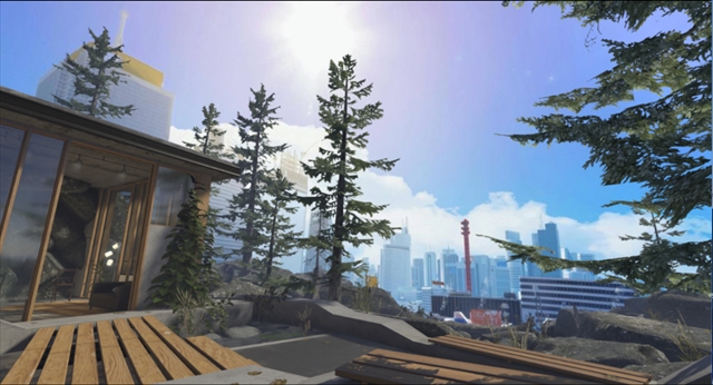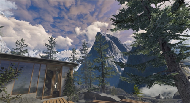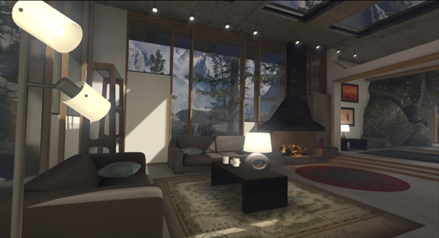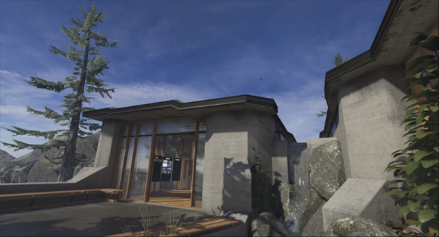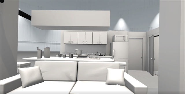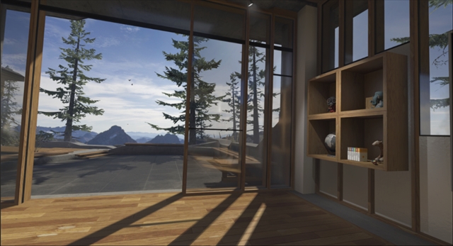周辺を見回し、コンピューターが設置された場所に視点が行くと空間のデザインが変化します。