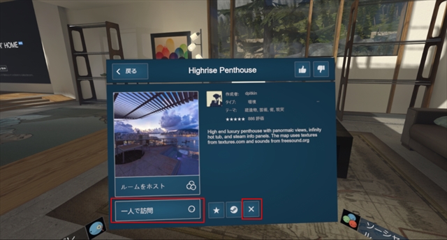 ダウンロードが完了すると、ダウンロード済みホーム一覧に追加されるので、訪問したいホームを選択します。