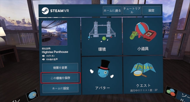 背景やホームなどの環境や設定を変更した場合は、「この環境を保存」を選択します。