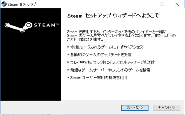ダウンロードしたSteamSetup.exeを実行し、ガイドに従ってインストールを行って下さい。