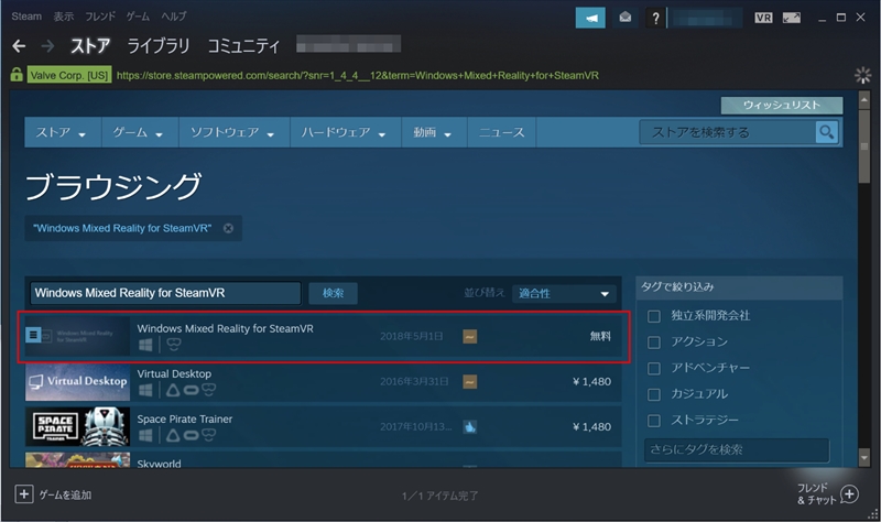 検索結果一覧から「Windows Mixed Reality for SteamVR」を選択します。