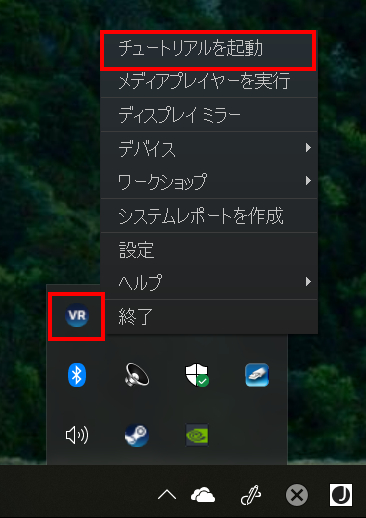チュートリアルを開始する前に、先ずはSteamVRを起動します。