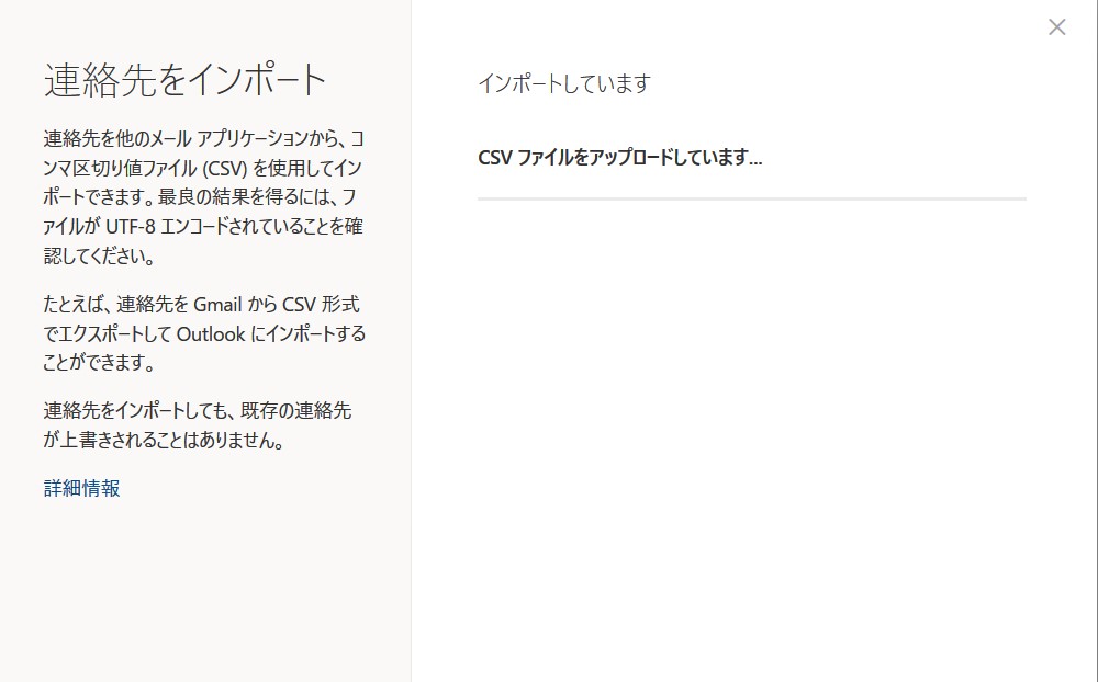 「ファイルの形式が正しくありません。Outlook CSV形式でエクスポートされたファイルであることを確認してください。」