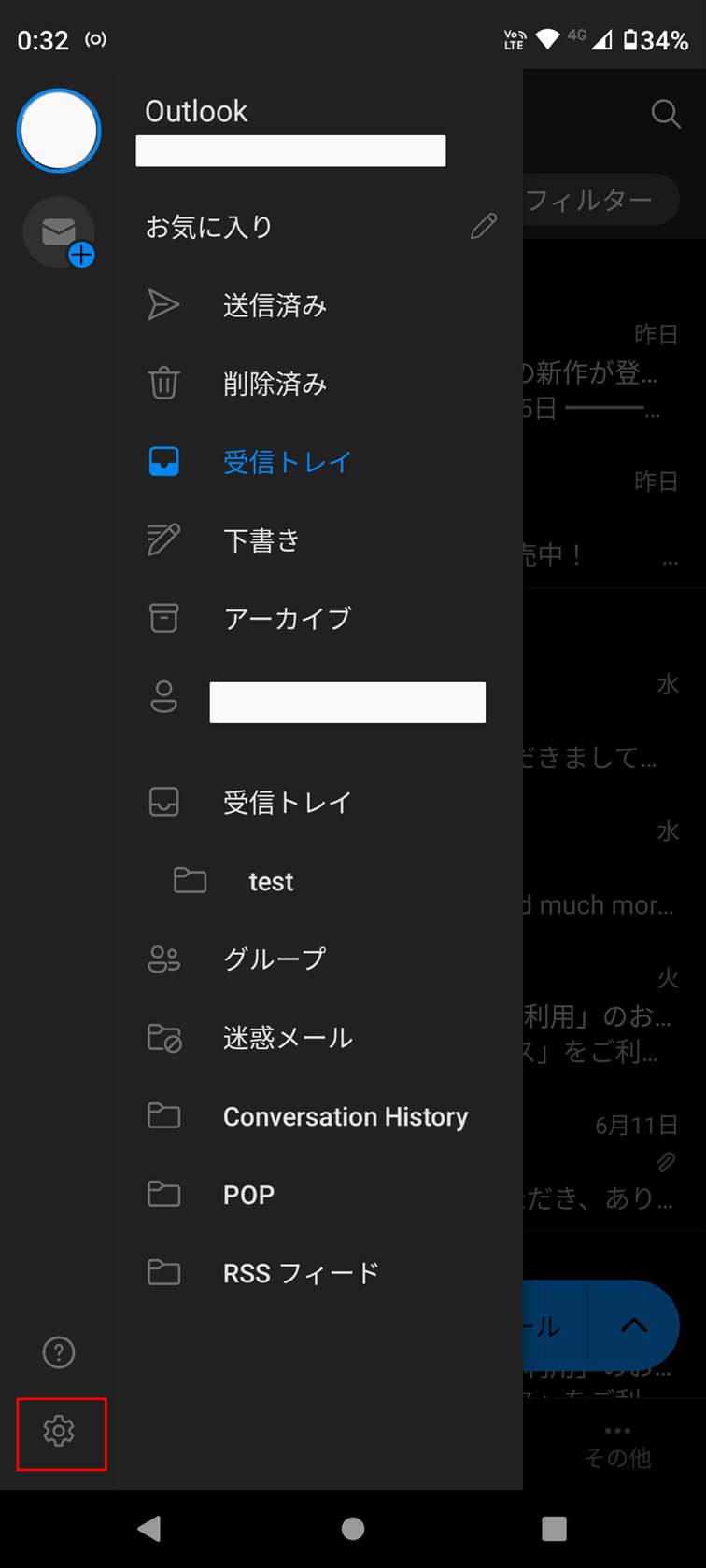 この例では、メールアプリにOutlookをインストールしていることを前提にしています。