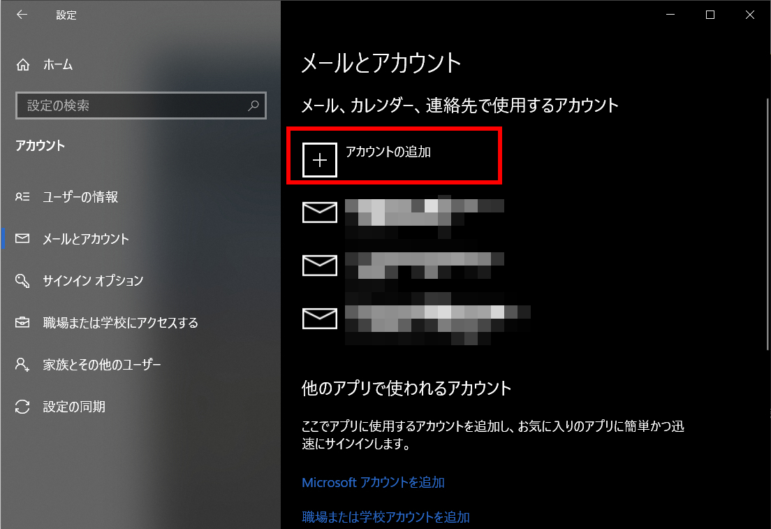 ③「メールの追加」を選択する。
