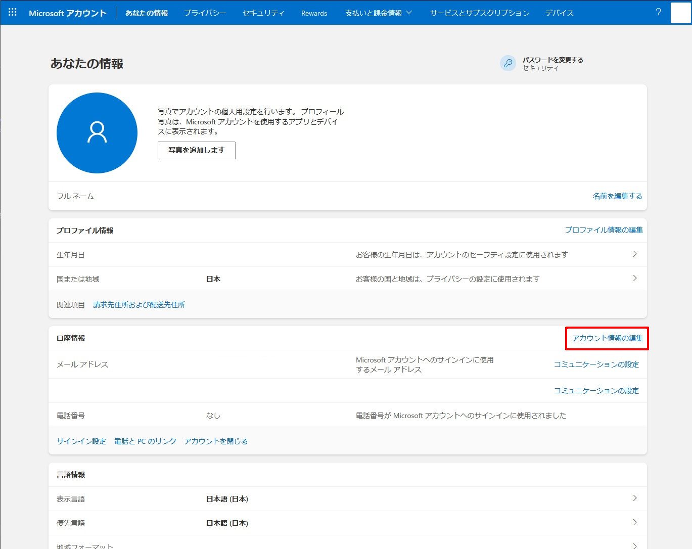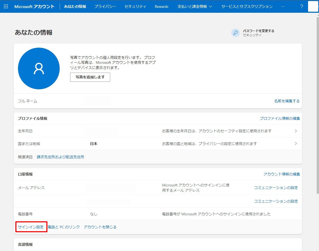 Microsoftアカウントの管理方法 (2023/04/04 Update)