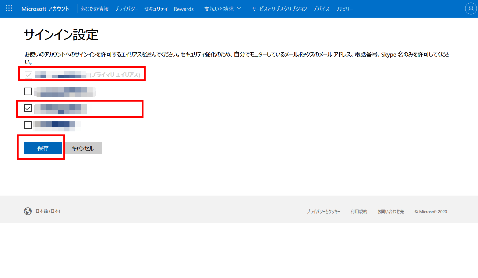 セキュリティ強化の為に、サインインできるエイリアスはプライマリ エイリアスのみにしておくことが望ましいです。