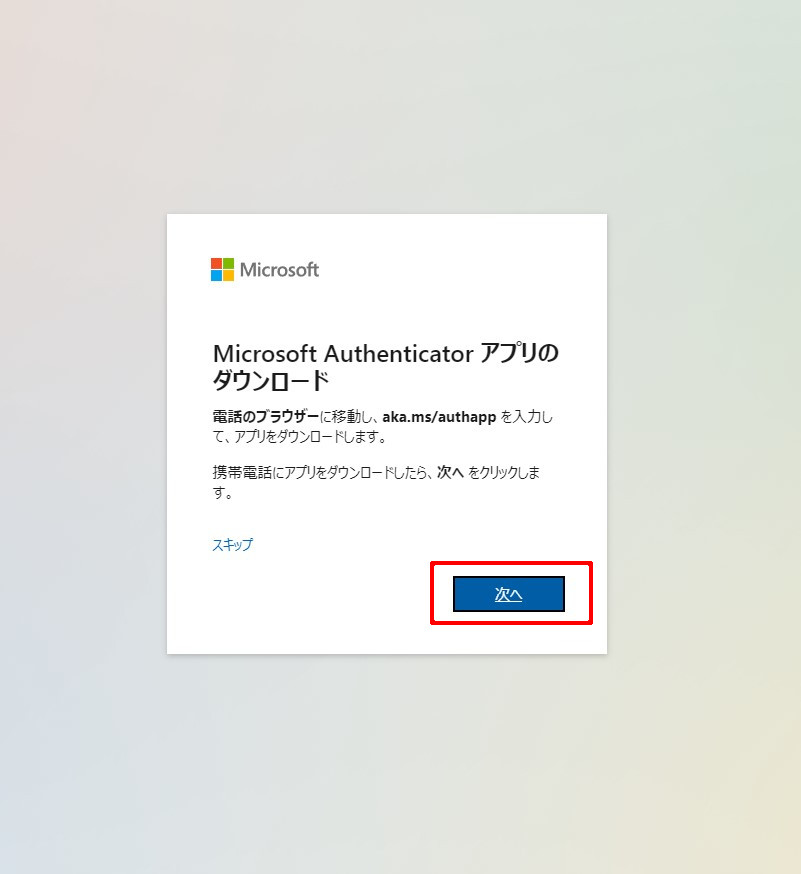 ⑥通常は、「Microsoft Authenticator」アプリをスマートフォンにインストールしアカウントを追加することを推奨する。