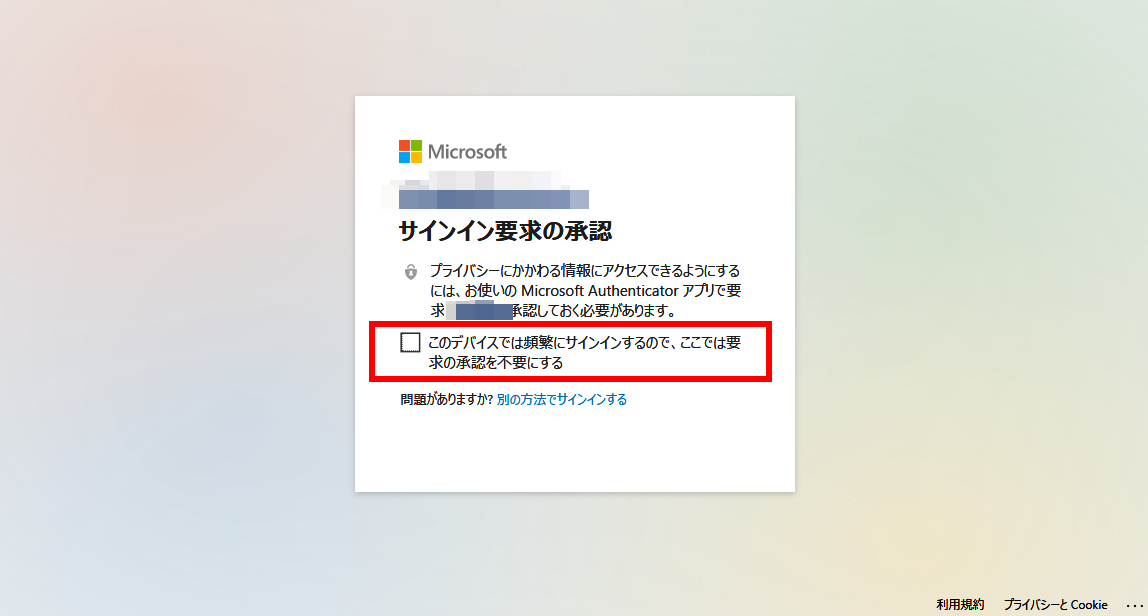 ①サインイン要求の承認が表示された場合は、「このデバイスでは頻繁にサインインするので、ここでは要求の承認を不要にする」を有効にする。