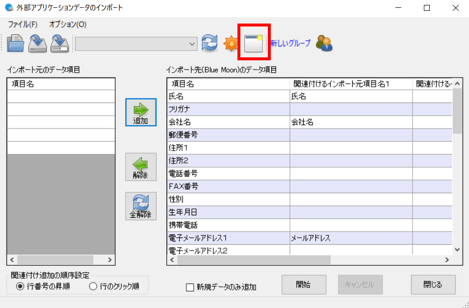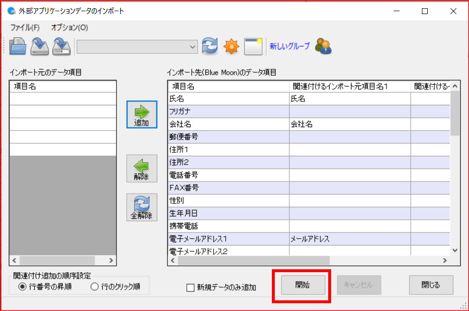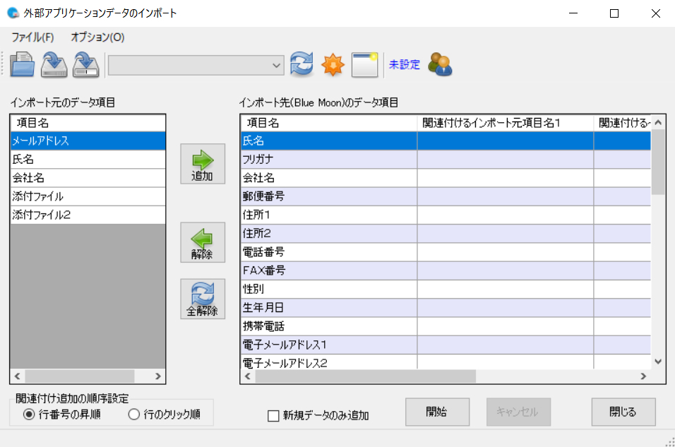 ②外部アプリデータのインポート画面で、項目の関連付けを行う。