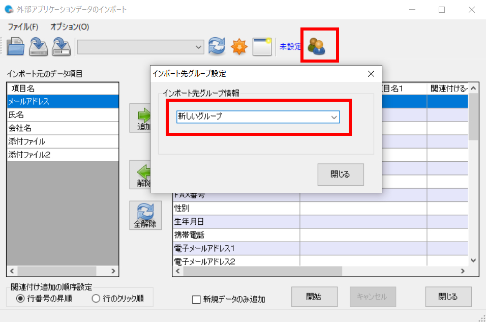 - (5)インポート先のグループは、インポート時に新規作成できる