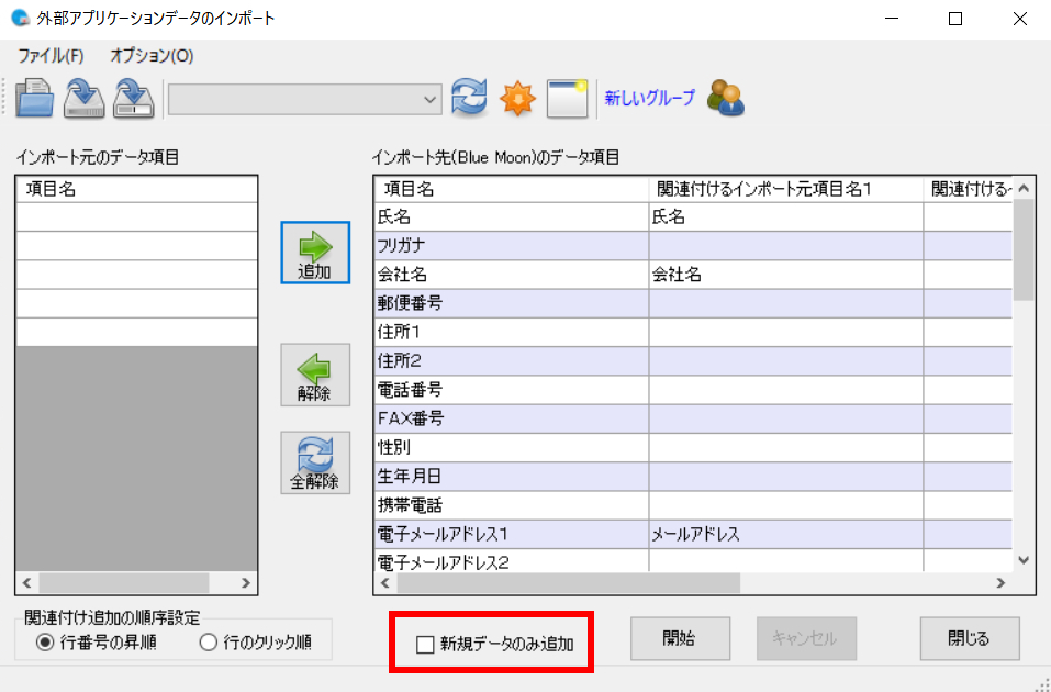 ⑤「新規データのみ追加」のチェックボックスでチェックを外す(既存ユーザーは更新され、未登録ユーザーは新規追加される)
