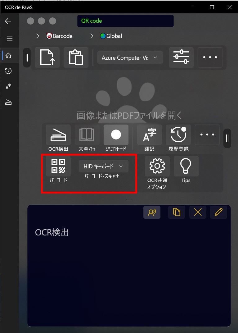 また、OCRと同様な操作で、バーコード画像ファイルやクリップボードからも読み取ることが可能です。