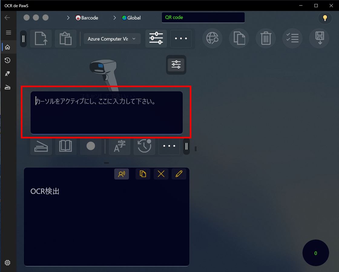② 読み取り結果が入力されるテキストボックスにフォーカスし、カーソルをアクティブ状態にして下さい。
