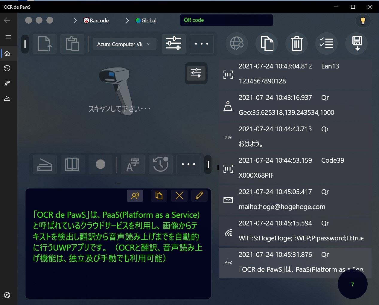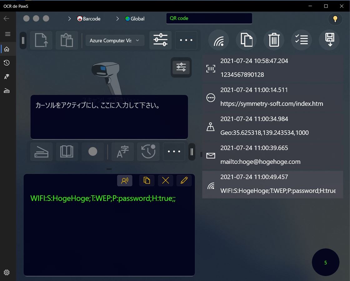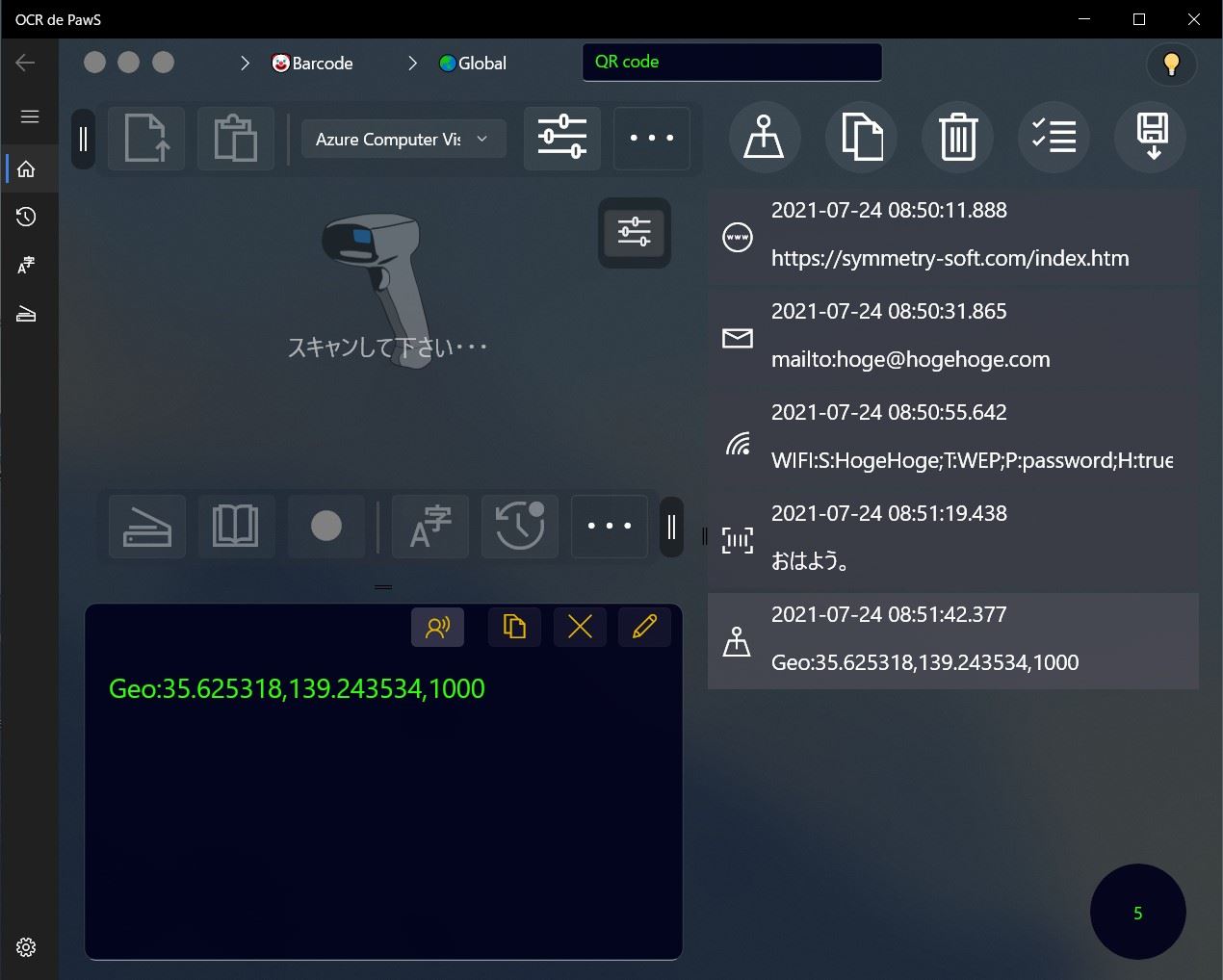 画像ファイルとクリップボードからの読み取りについては、基本操作の「バーコード検出」を参照して下さい。